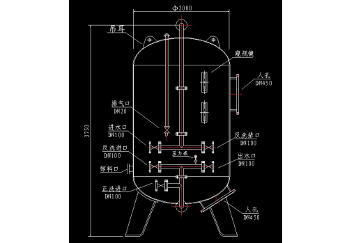 The quartz sand filter uses quartz sand as the filtration medium. Under a certain pressure, water with high levels of suspended solids is passed through a specific thickness of quartz sand. This effectively traps and removes suspended solids, organic matter, colloidal particles, microorganisms, and more from the water, achieving reduced suspended solids and purified water.
